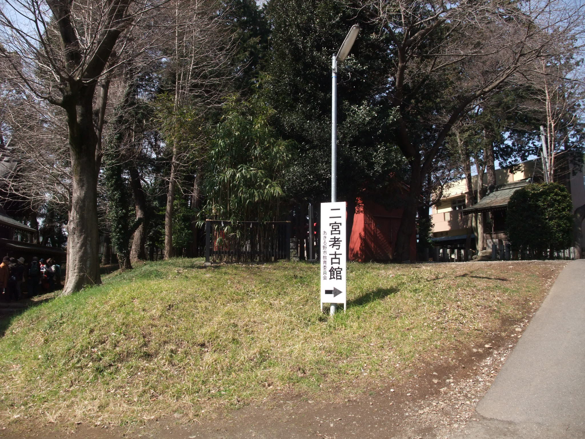 神社右側に二宮考古館の看板があります。矢印の方へ進んでください