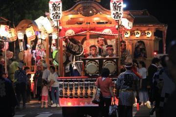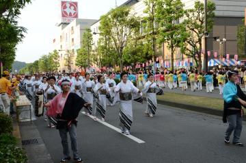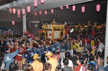 駅前大通りでは、鼓笛隊のパレードや和太鼓の演奏、ソーラン踊りや流し踊りも行われました。陽が落ちてからは、お神輿やお囃子で大通りが埋め尽くされ、夏まつりは最高潮に達しました。