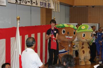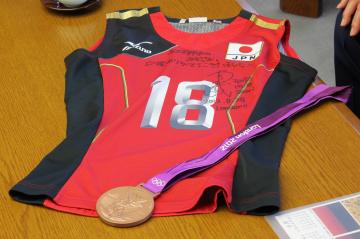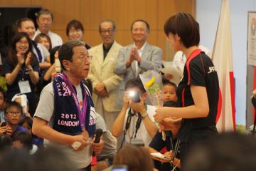 ロンドンオリンピックバレーボールで銅メダルを獲得した木村沙織選手があきる野市を表敬訪問