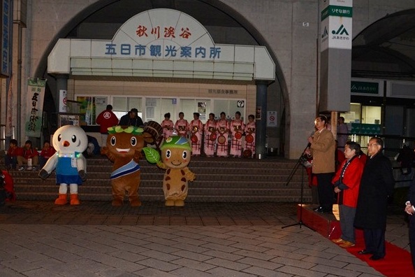 11月30日に武蔵五日市駅前のイルミネーションが点灯しました。これは、五日市活性化戦略委員会と市が協働して実施したものです。