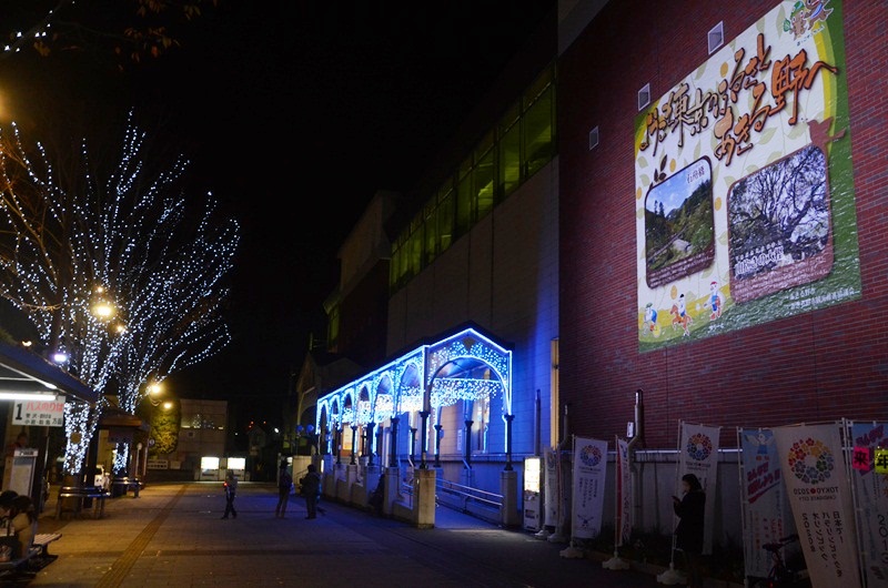 イルミネーションが武蔵五日市駅前を明るく照らします。