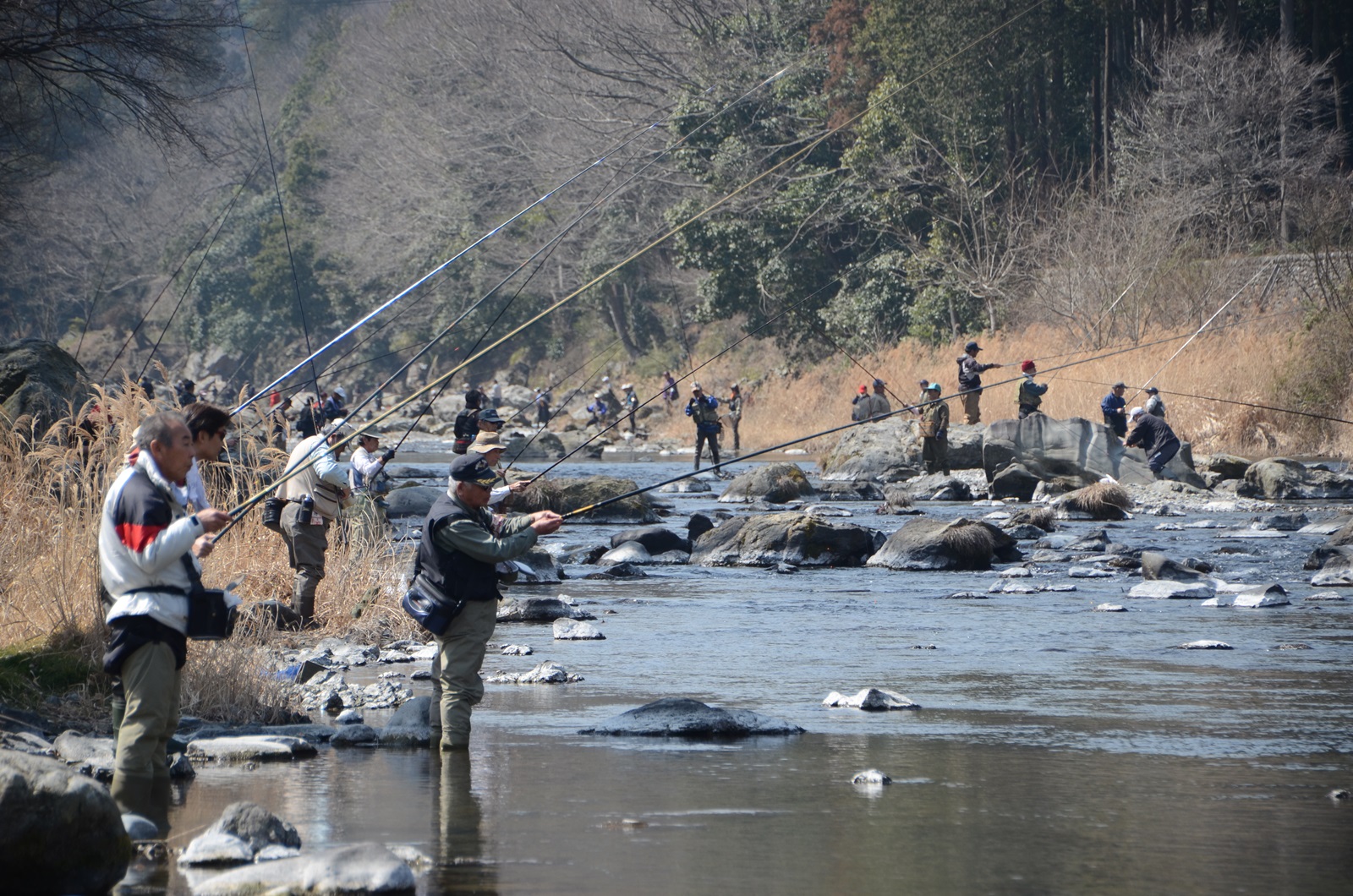 3月9日に秋川上流(山田堰から沢戸橋)、3月16日に下流(山田堰から下流)でマス・ヤマメ釣りが解禁となりました。