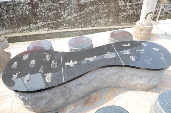 式典のイベントでは、戸倉小PTAの方々のトーンチャイムの演奏や在校児童20人の手話による歌の披露などがありました。除幕式で公開された記念碑の隣には、在籍児童が描いた鳥の絵や版画をもとに彫られた石造のテーブルが設置され、愛鳥活動の記憶が消えることなく残り続けます。