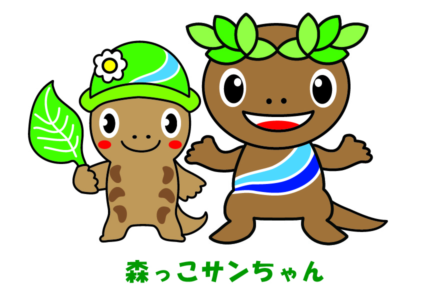 (1)環境都市あきる野の実現に向けたあきる野市のイメージキャラクターである「森っこサンちゃん」(下図)と「20」「20th」「あきる野」といった文字等を組み合わせるなどし、あきる野市制施行20周年を印象づけるデザインとします。