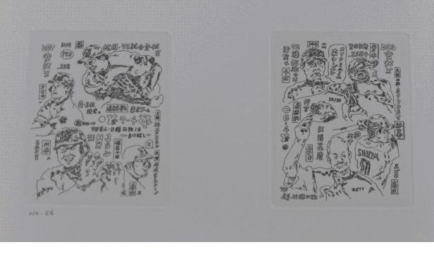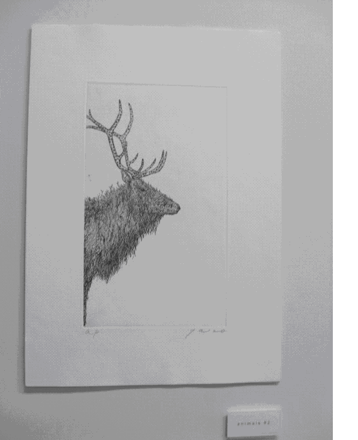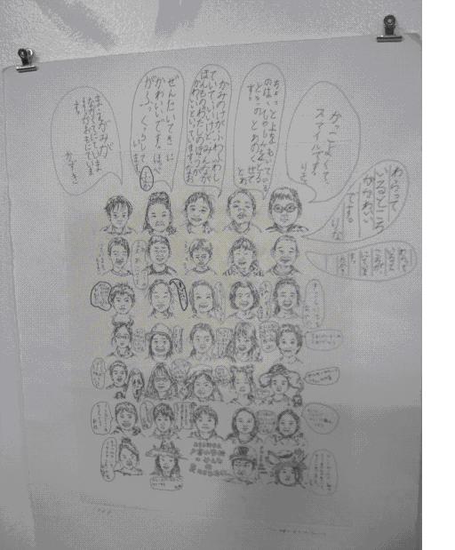 「日常的にテーマとしている「に・褒められたくて」シリーズを戸倉小学校の児童と一緒に取り組みました。全員の写真を撮り、それを元に描画、後日、刷り上った銅版画をみんなに見せて感想を書いてもらう、というもの。感想については、「僕は人に褒めてもらうのが大好きです。これもみんなに褒めてもらいたくて描きました。いっぱい褒めてください。但し、思ったままに。褒められないな、と思ったら、そう書き記してください。」とお願いしました。一方的に描くのではなく、描く側と描かれる側との関係性の中で生まれた作品です。作品は刷り増しして、全員に差し上げようと思っています。」(永澤孝博)