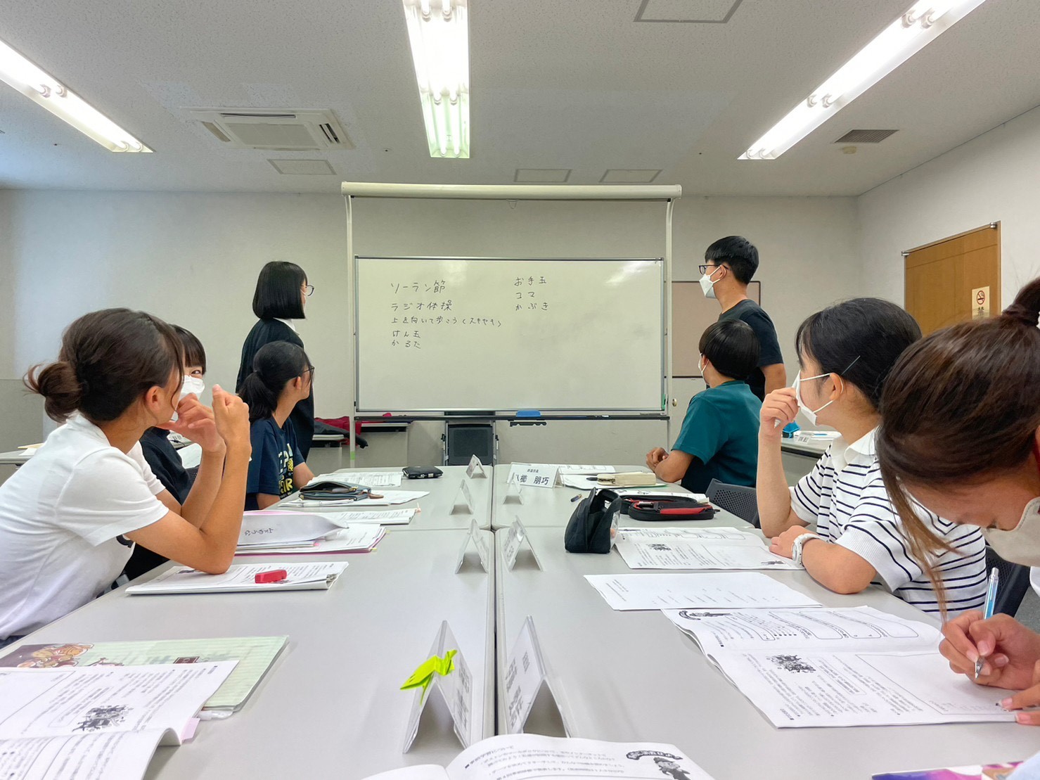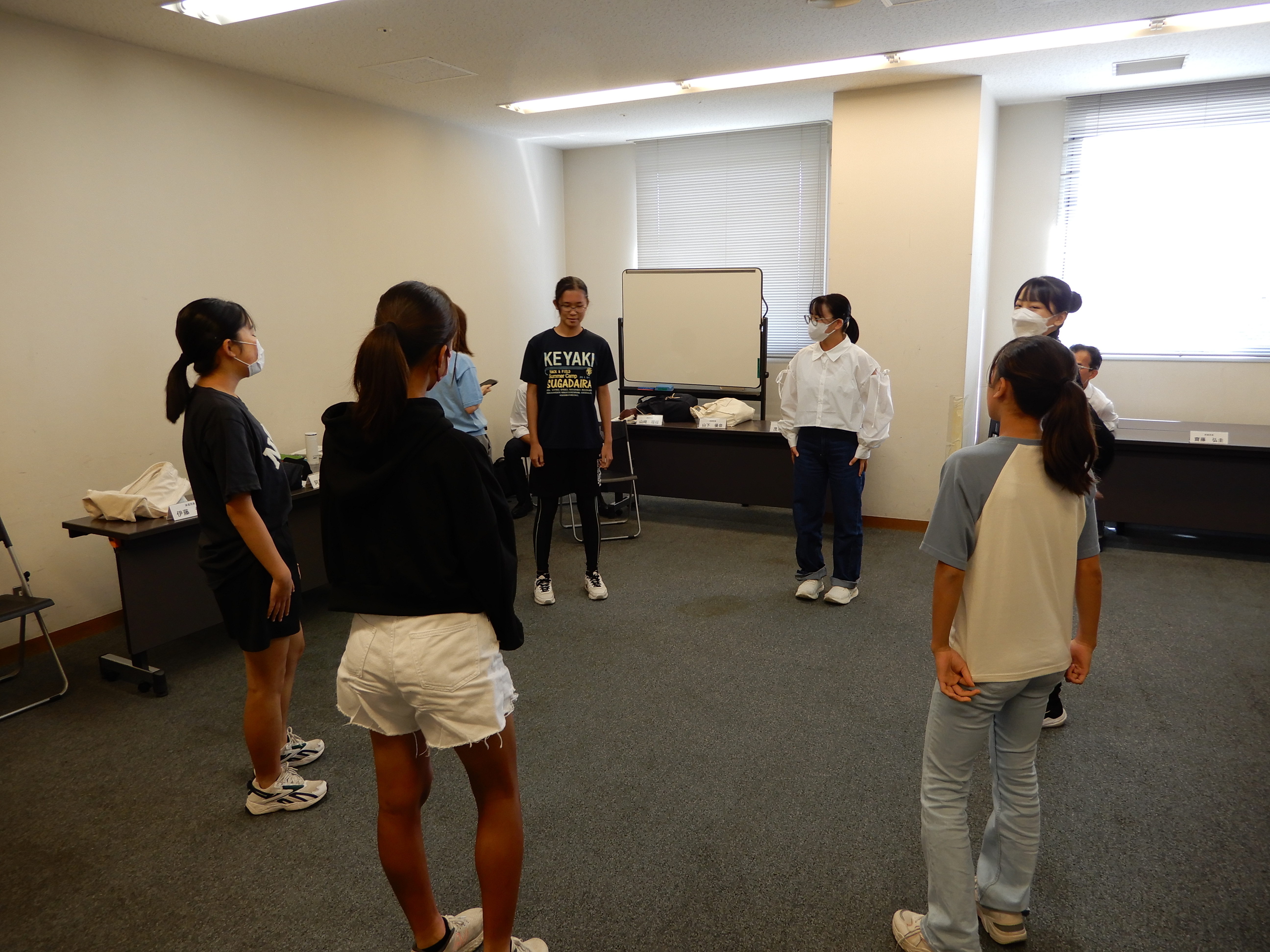 日本文化紹介の出し物(ソーラン節・けん玉・お手玉・コマ)の進行を決め、練習しました。
