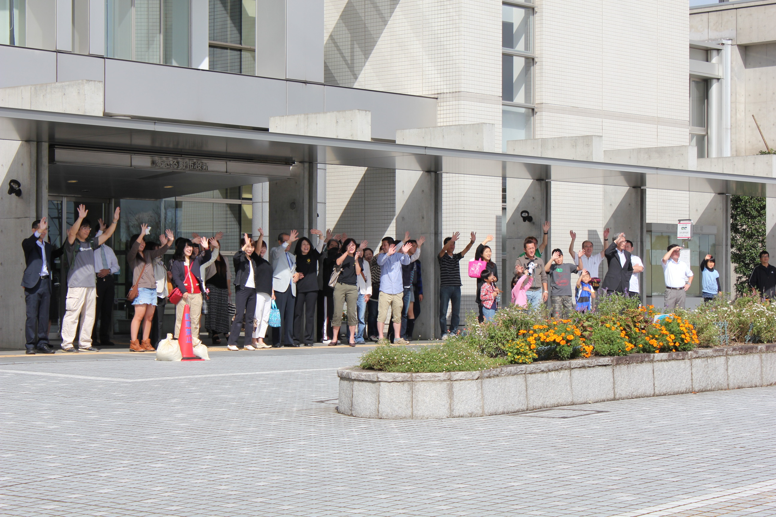 たくさんの方々に見送られながら、派遣団は元気いっぱいで出発しました。