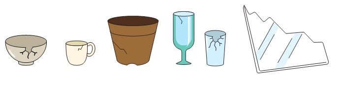 茶わん、皿、急須などの瀬戸物類・陶器製の植木鉢、ガラス、鏡など