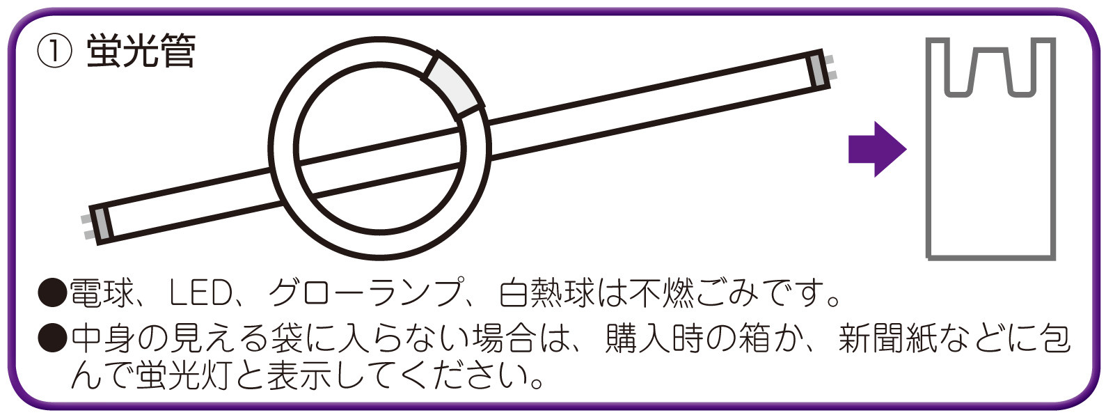 •透明な袋に入らない場合は、購入時の箱か、新聞紙などに包んで「蛍光管」と表示して出してください。