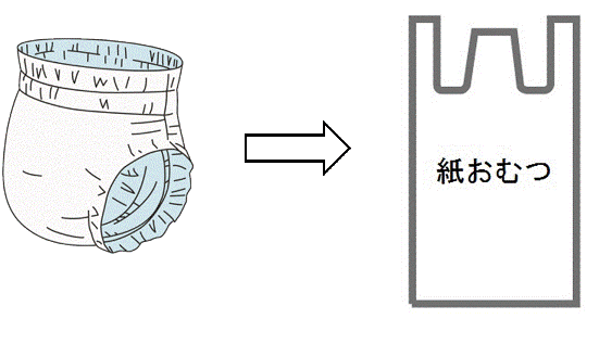 •半透明の袋で出す場合は袋の表面に「紙おむつ」と表示してください。