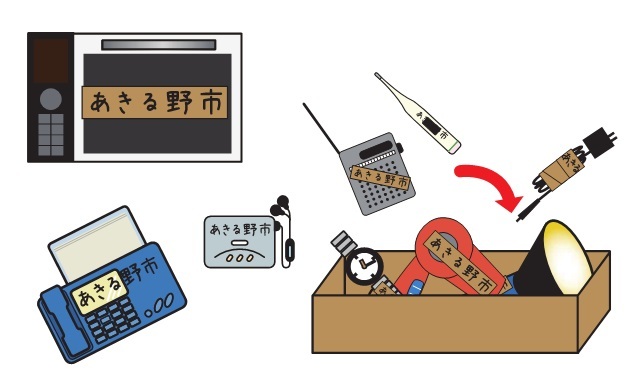 - 品物一つ一つに直接「あきる野市」と表示し、透明なビニール袋かバケツやダンボール箱などに入れてください。表示がない場合は収集できません。