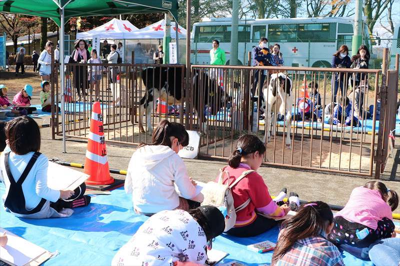 子どもたちによる子牛の写生会