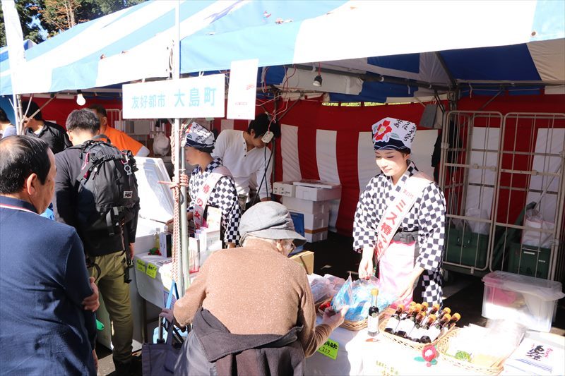 友好都市の東京都大島町。大島町の特産品などがずらりと並びました。