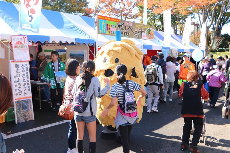 栗原市のマスコットキャラクター「ねじりほんにょ」も会場内の人気者