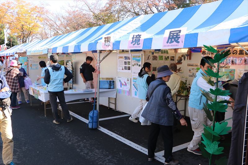 環境ブースでは、グリーンカーテンコンテストの写真展示や市内の生き物の紹介がありました。