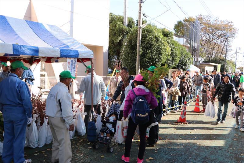 苗木(ブルーベリー・アジサイ・オリーブ)の無料配布には、長蛇の列ができました。