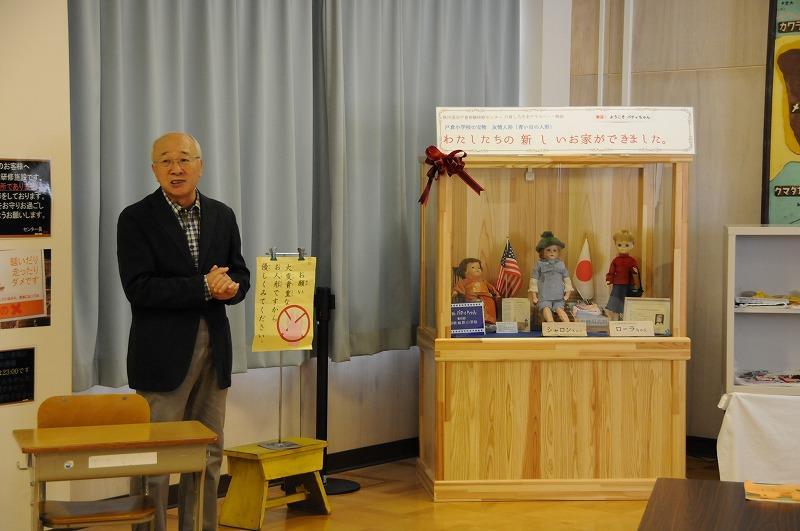 旧戸倉小学校に保管されていた友情人形(シャロンちゃん、ローラちゃん)の常設展示を記念して、歓迎会が戸倉しろやまテラスで開催されました。