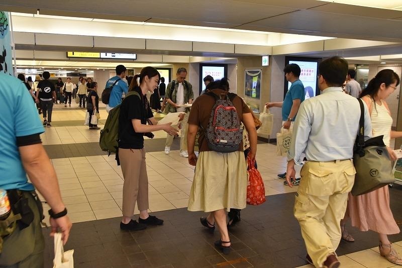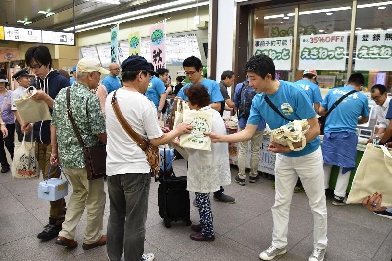 吉祥寺駅では700部のエコバックを配布しました。