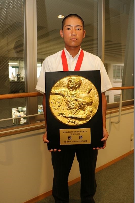 先日、神宮球場で行われた第99回全国高等学校野球選手権大会の西東京大会決勝で、早稲田実業との激闘を制し、見事全国大会出場を決めた東海大学菅生高等学校の野球部員が平成29年8月1日(火曜日)に市役所を訪れました。