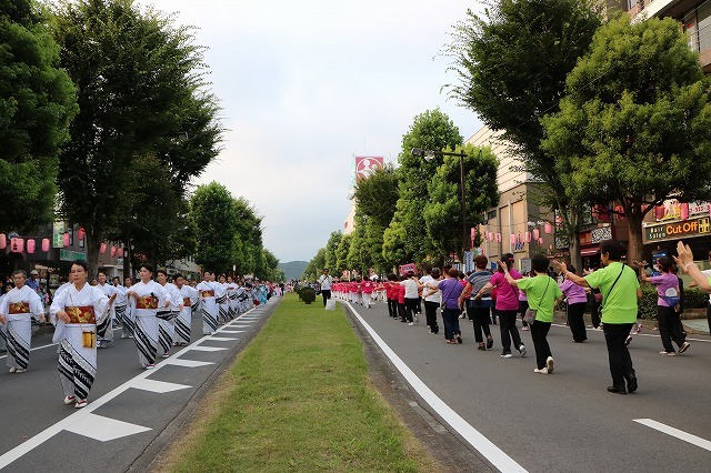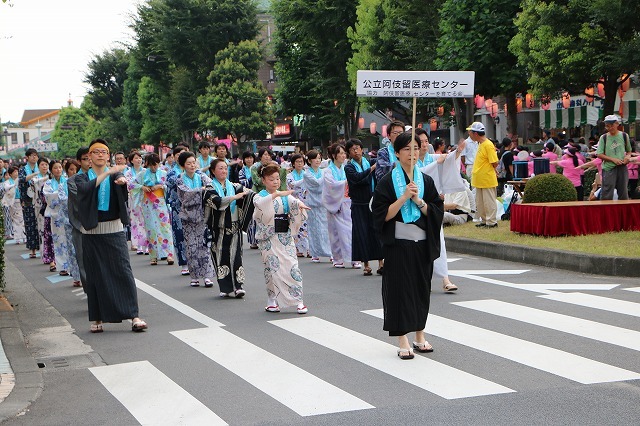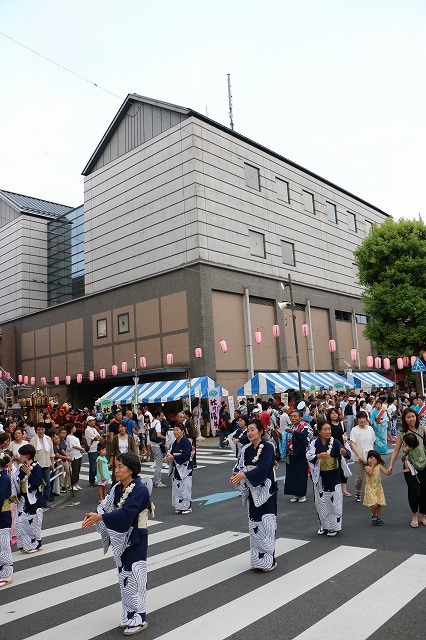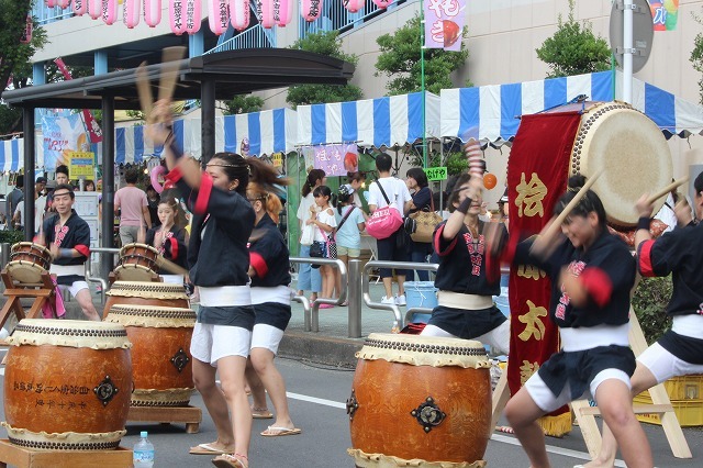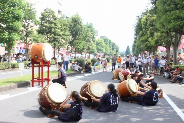 8月5日、雨も予想されましたが時折、晴れ間も出る天気の中、秋川駅北口周辺で「第15回あきる野夏まつり」が開催され、約3万5千人の人でにぎわいました。鼓笛隊のパレードや和太鼓の演奏、ソーラン踊り、流し踊り、お神輿、お囃子など、市民サークルや町内会・自治会の皆さんが参加し、夏の1日を盛り上げていました。