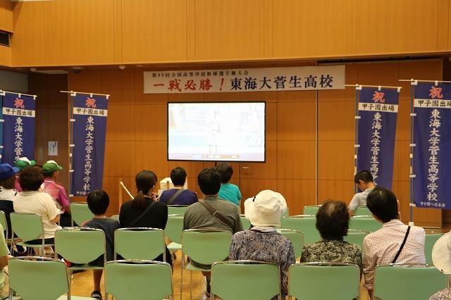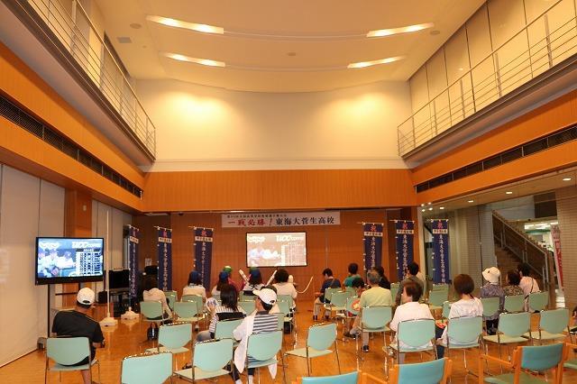 庁舎(1階コミュニティホール)で東海大学菅生高等学校のパブリックビューイングを開催しました