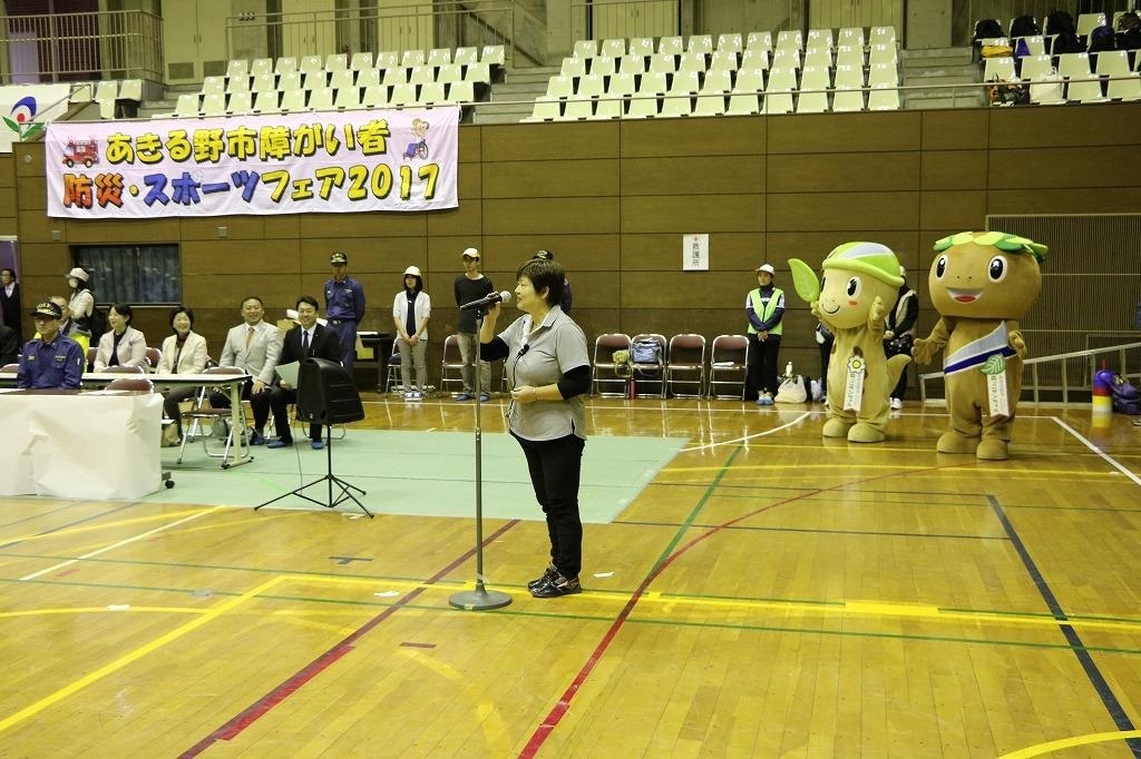 10月28日(土曜日)、都立秋留台公園および秋川体育館にて、障がい者(児)と小学校3年生までの子どものための防災とスポーツの交流・体験イベント「あきる野市障がい者 防災・スポーツフェア2017」を開催しました。