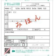 交付を希望される方は、通知カードとあわせて送付されている交付申請書(※1)に必要事項を記入のうえ顔写真を添付し、同じく同封されている送付用封筒(※2)に入れて地方公共団体情報システム機構へ直接申請してください。