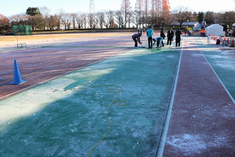 前日の雨により、当日の朝は、競技場内のトラックに氷が張ったため、スタートを20分繰り下げて行われました。