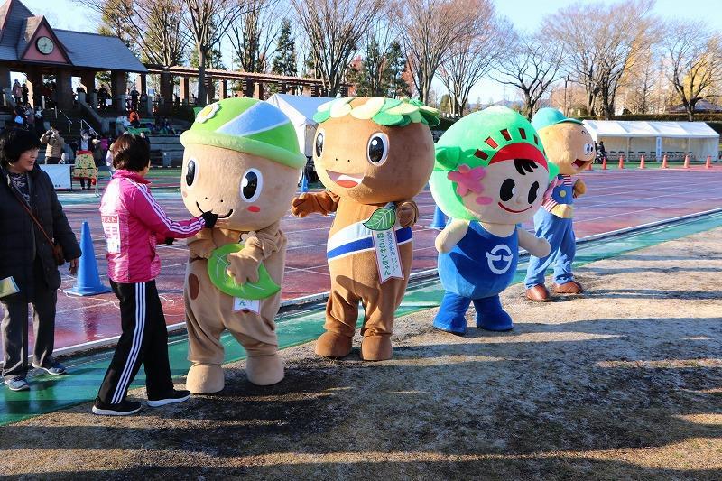 ゆるキャラ(あきる野市:森っこサンちゃん 日の出町:ひのでちゃん、桧原村:ひのじゃがくん)が大会を盛り上げました