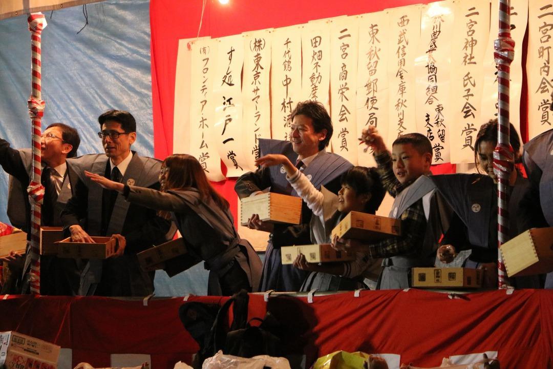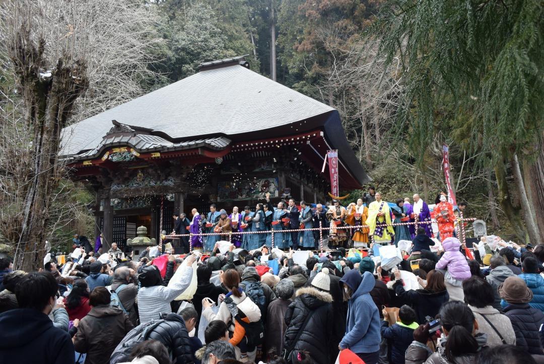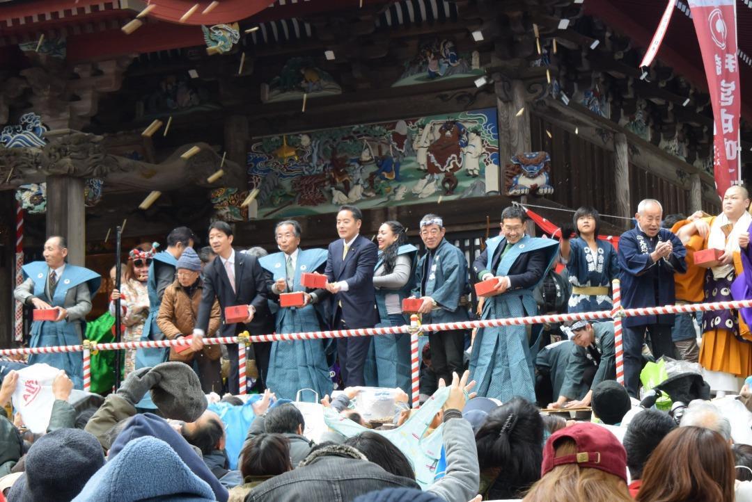 遠くまで届くようにと豆が飛び交います。
