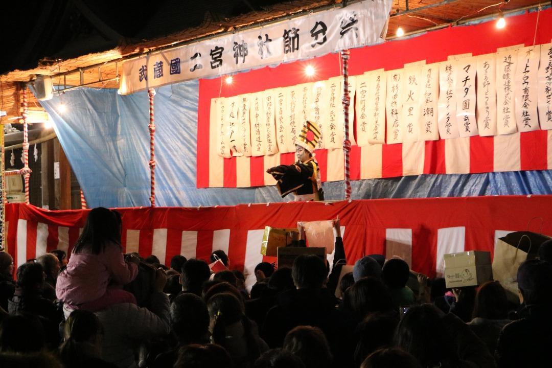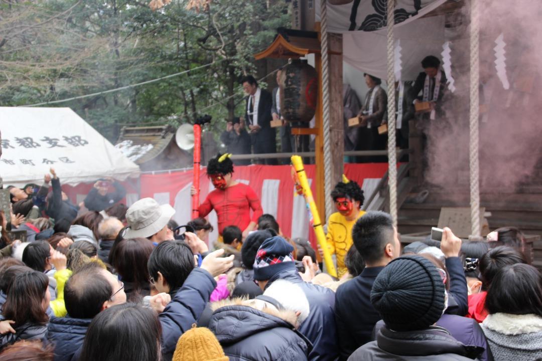 豆をもらおうと境内も大盛り上がりです。