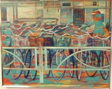 佳作「カモメたちの朝(東秋留駅前)」 アクリル+オイルパステル F-30 木村俊次