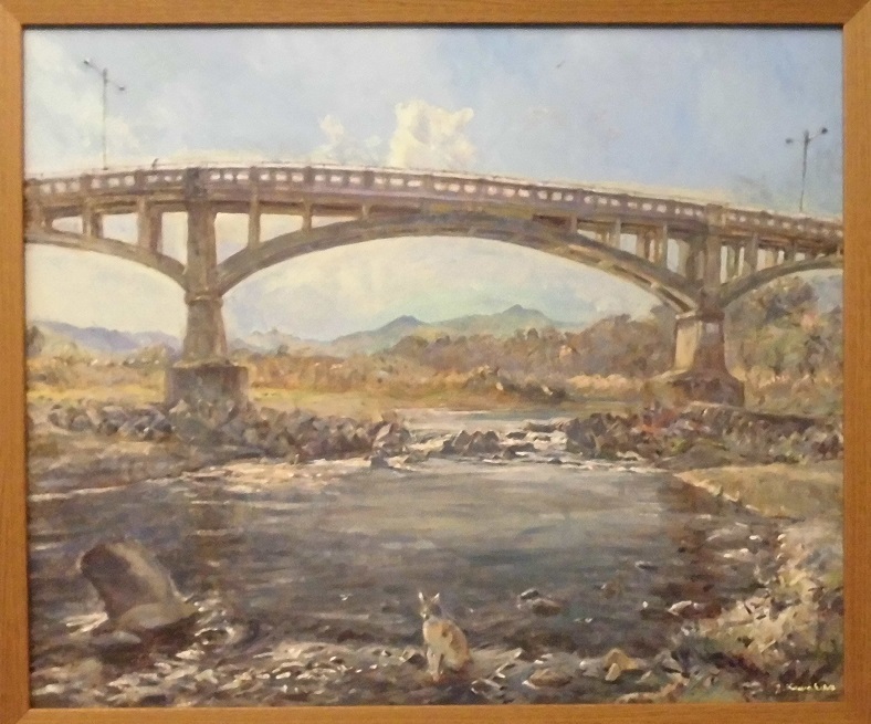 秀作「猫のいる東秋留橋」油彩 F-20 川北 茂