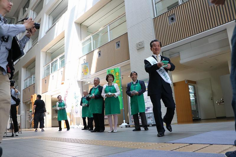 5月14日午前10時から市役所1階ロビーで市長が一日「民生委員・児童委員」として啓発活動を行いました。