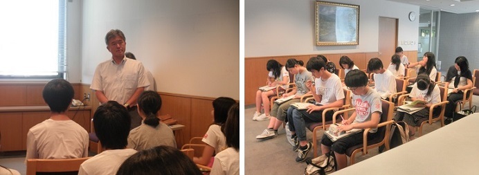 日本文化紹介の出し物を話し合い、練習をしました。昼食後は、英会話レッスンを受講しました。