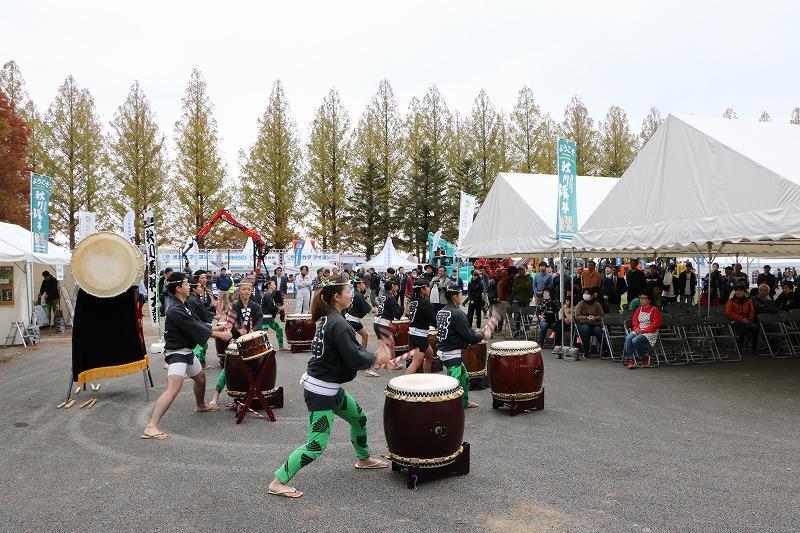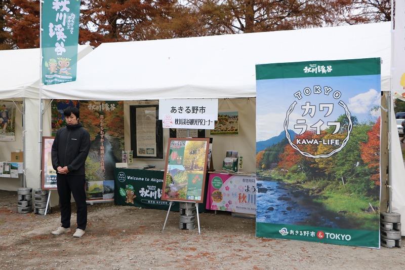 歓迎アトラクションの「秋川風神太鼓」が披露され、地元の商品、味を飲食・物販ブースでおもてなししました。