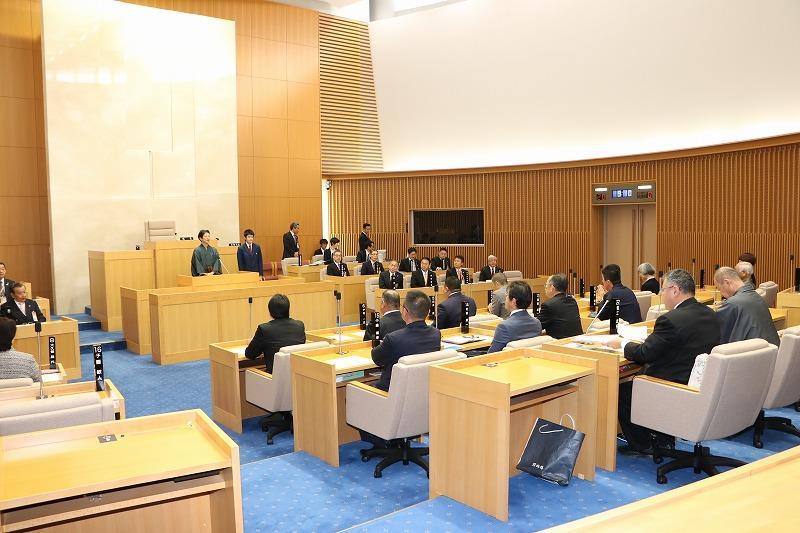 議場で中学生の主張大会最優秀賞受賞者の作品を発表しました