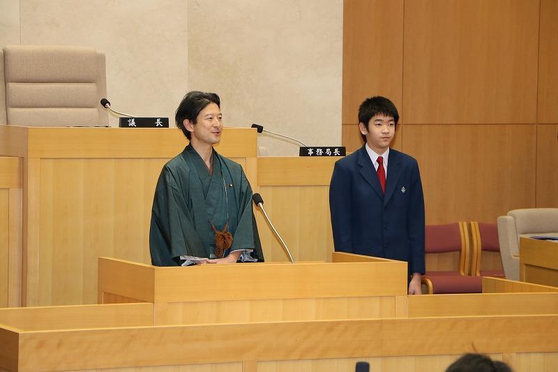 1月7日 議場で中学生の主張大会最優秀賞受賞者の作品を発表しました