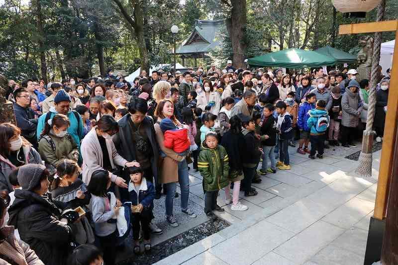 2月3日(日曜日)毎年恒例の節分祭・節分会が阿伎留神社、大悲願寺、二宮神社で開催され、幸福を祈願するたくさんの人で賑わいました。