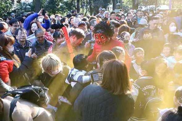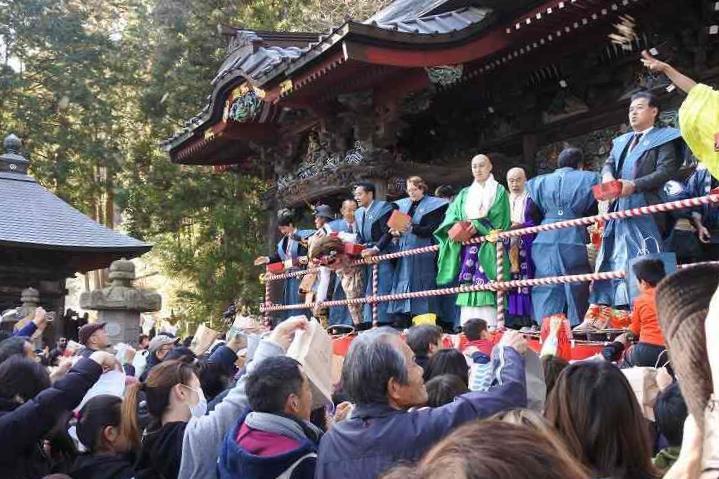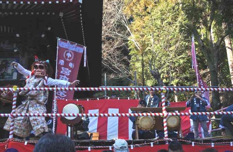 午後1時からお囃子、午後2時からお練り、午後2時45分から豆まきが行われました。