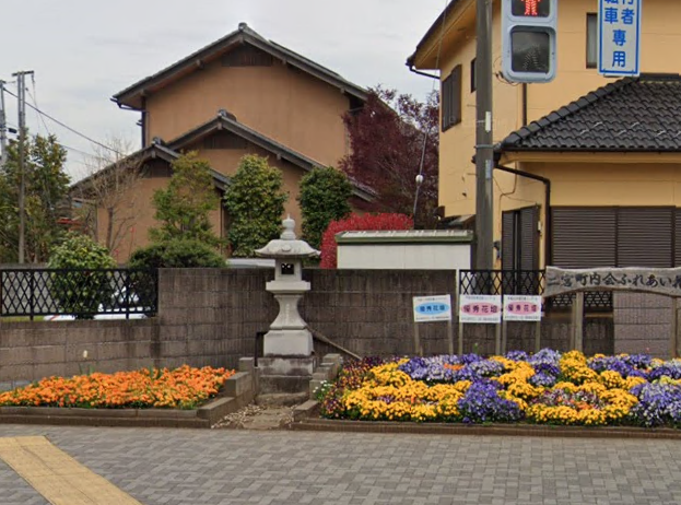 二宮交差点信号脇、二宮町内会花壇のところに建つ「秋葉山大権現の石灯篭」