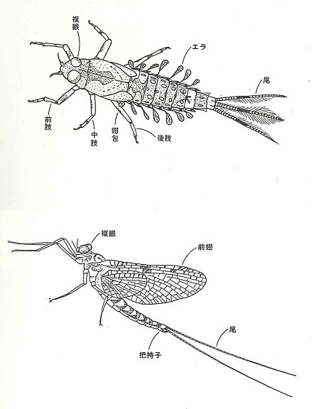 カゲロウの各部の呼び方