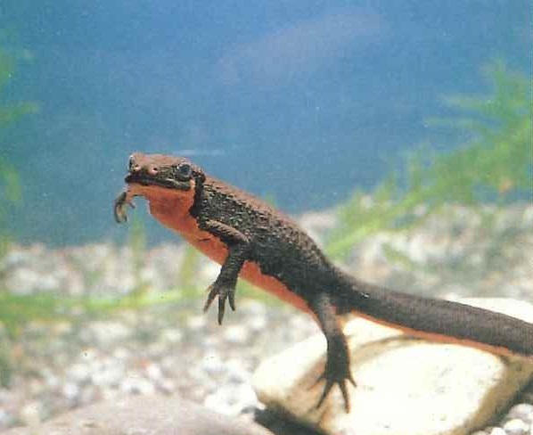 「アカハライモリ」 水のきれいな池や清流に住んでいます。