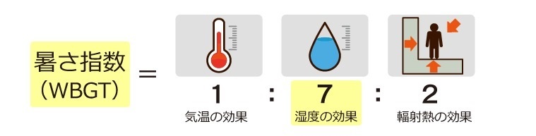 ※「暑さ指数」とは、気温と湿度と輻射熱(地面や建物などが日差しを浴びた時に出る熱)の3つを組み合わせた指標で、専門的にはWBGT(湿球黒球温度)と呼ばれるものです。「暑さ指数」は気温だけよりも熱中症発生の目安となります。