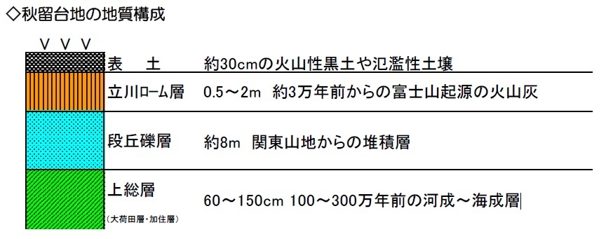 秋留台地の地質構成(「あきる野市自然環境調査結果報告書(平成21年度~23年度)」より)