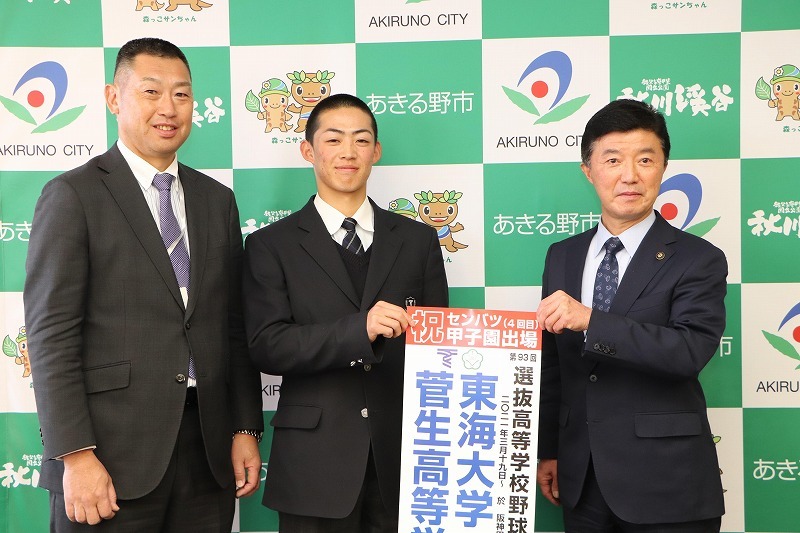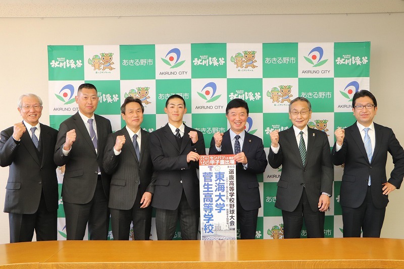 2月19日 春の選抜高校野球大会(3月19日開幕)に出場する東海大菅生高校 硬式野球部の若林監督、主将の榮選手などが市長を表敬訪問しました。