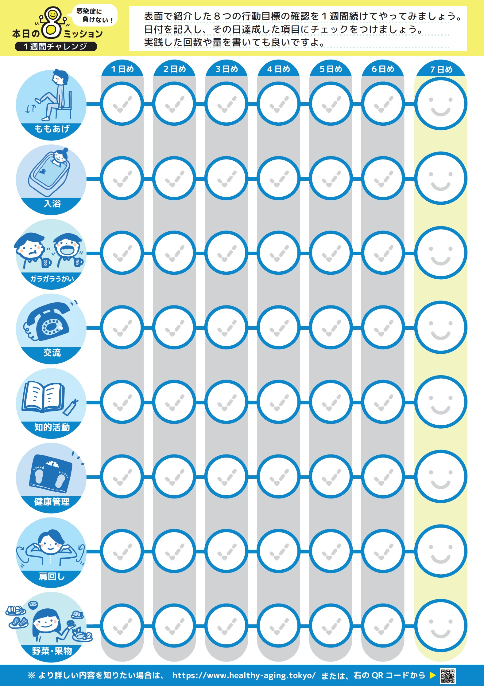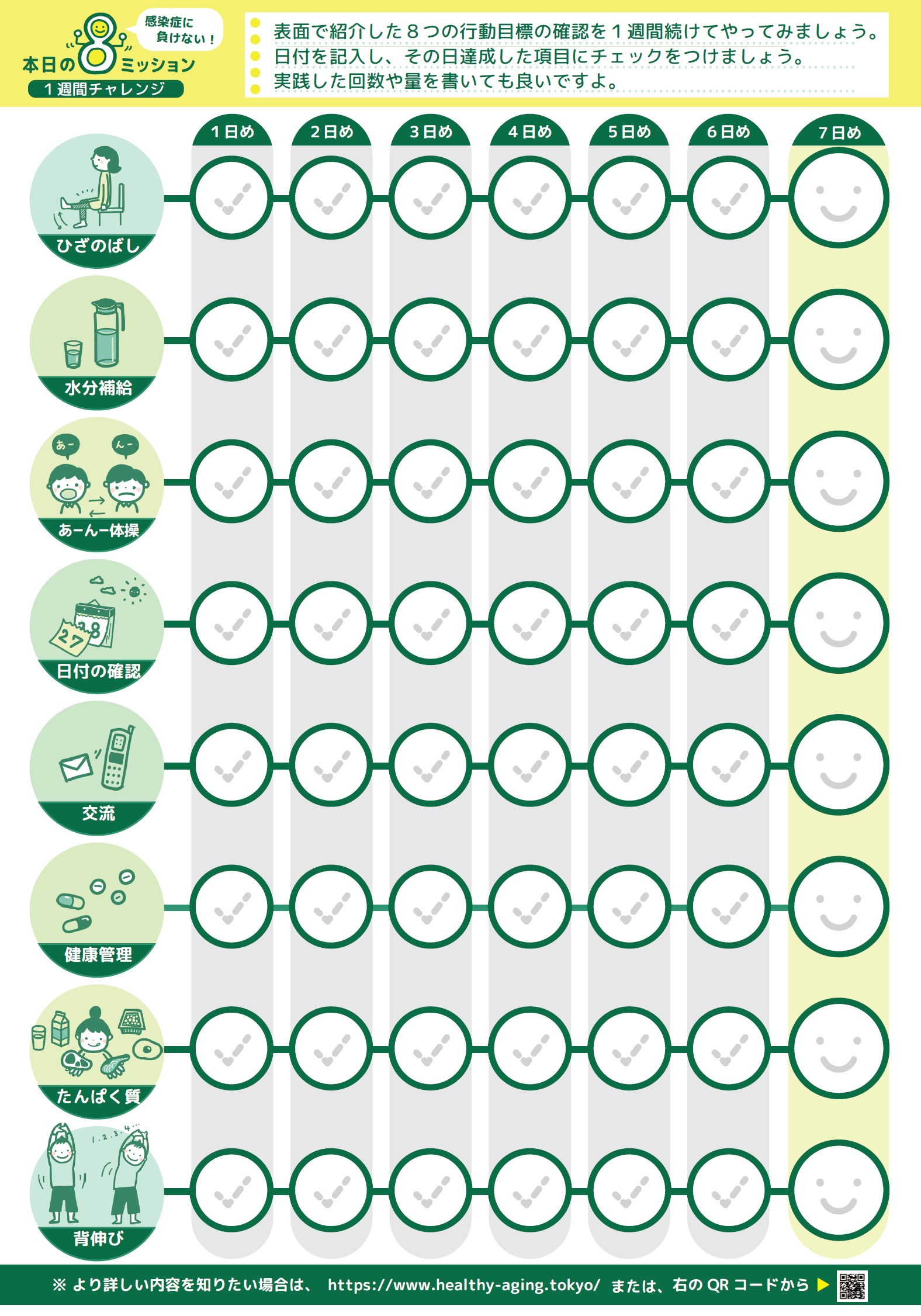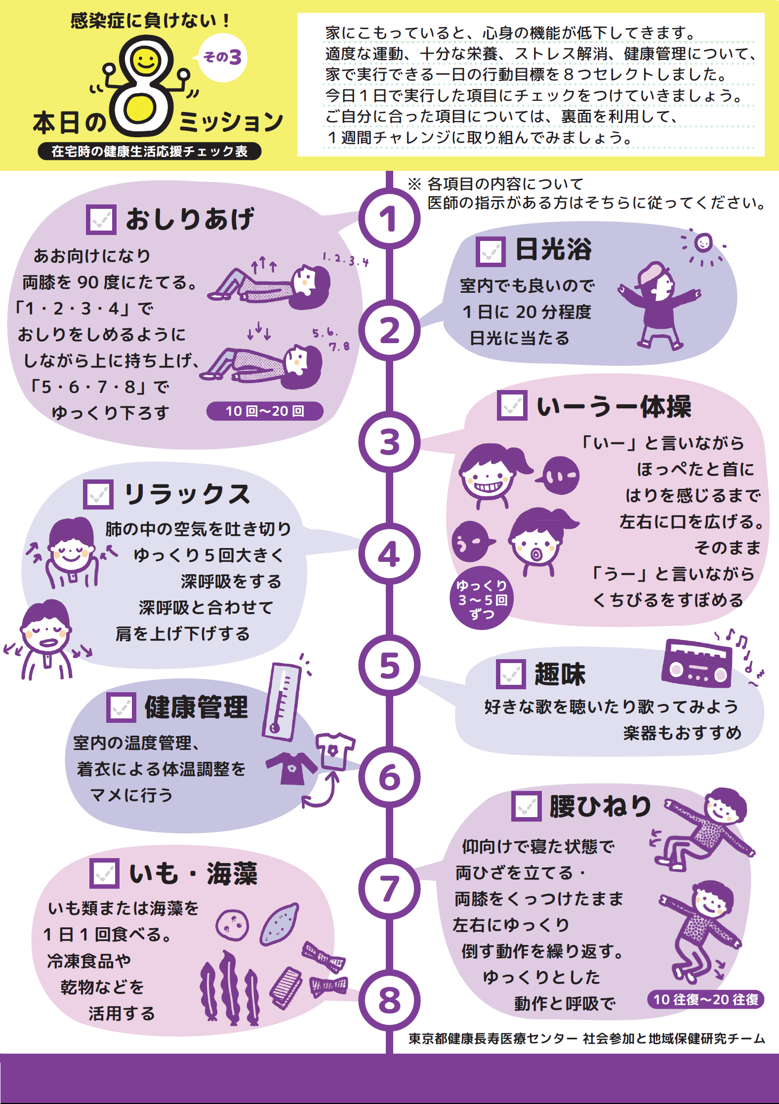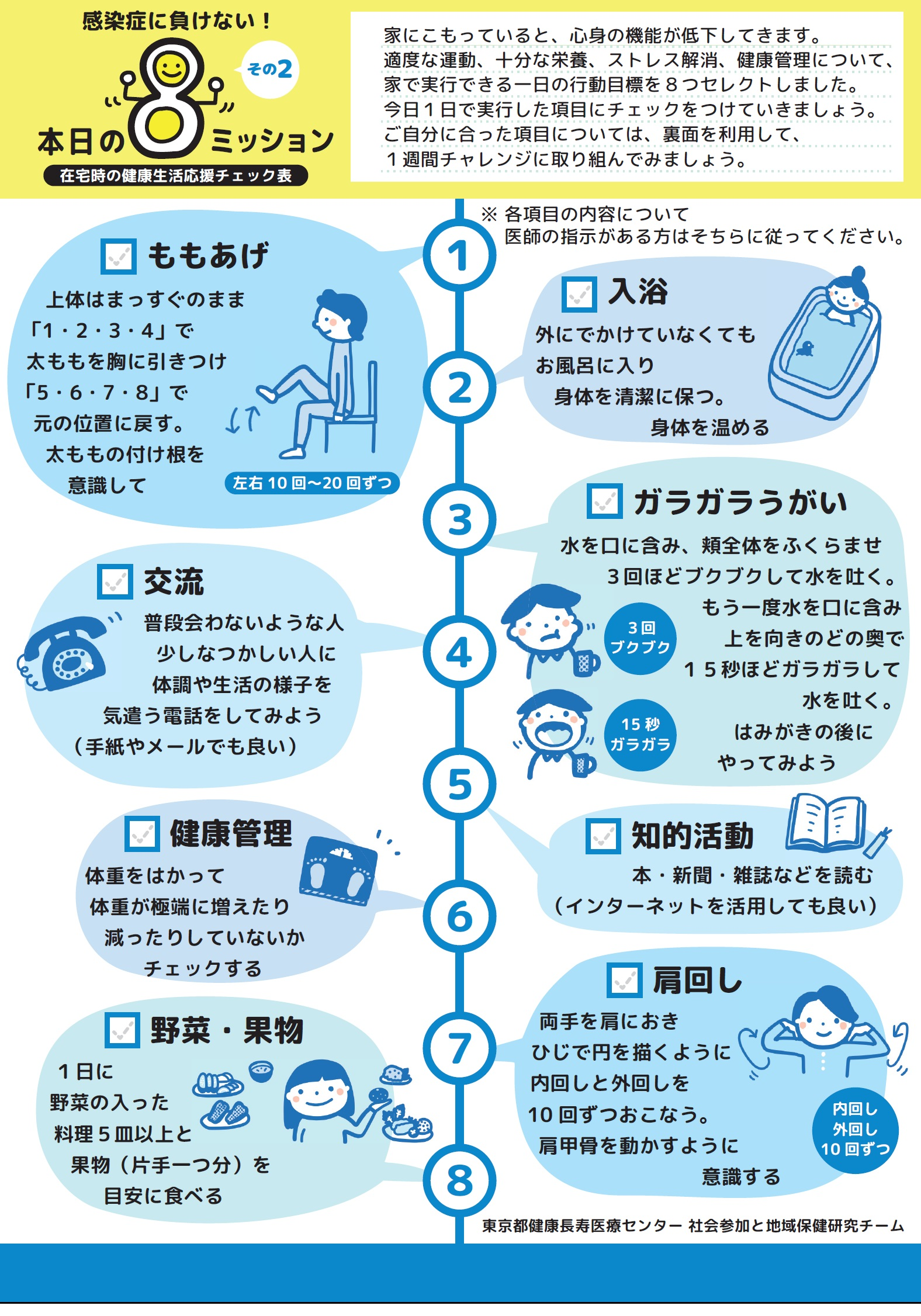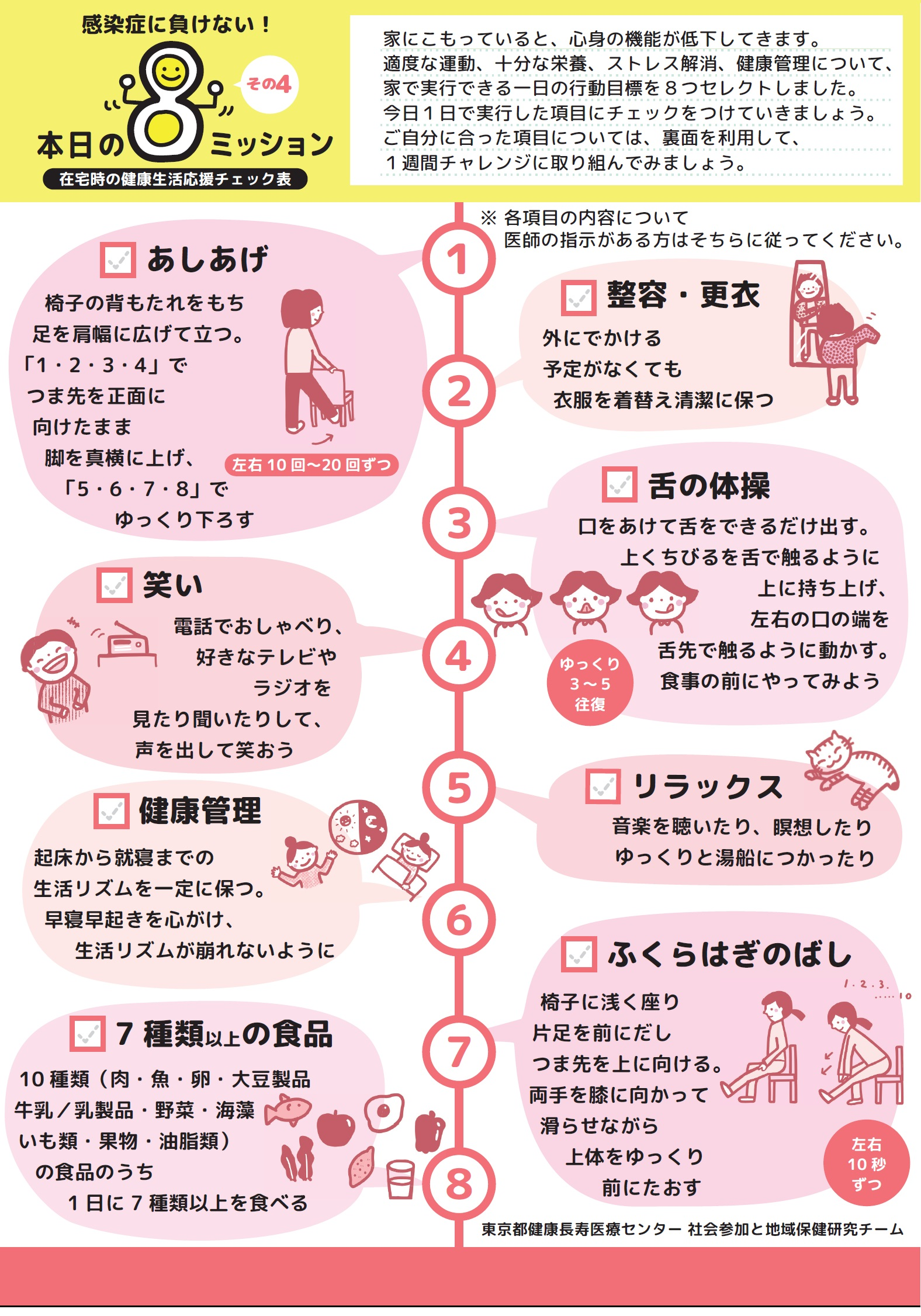在宅時の健康生活応援チェック表(東京都健康長寿医療センター提供)