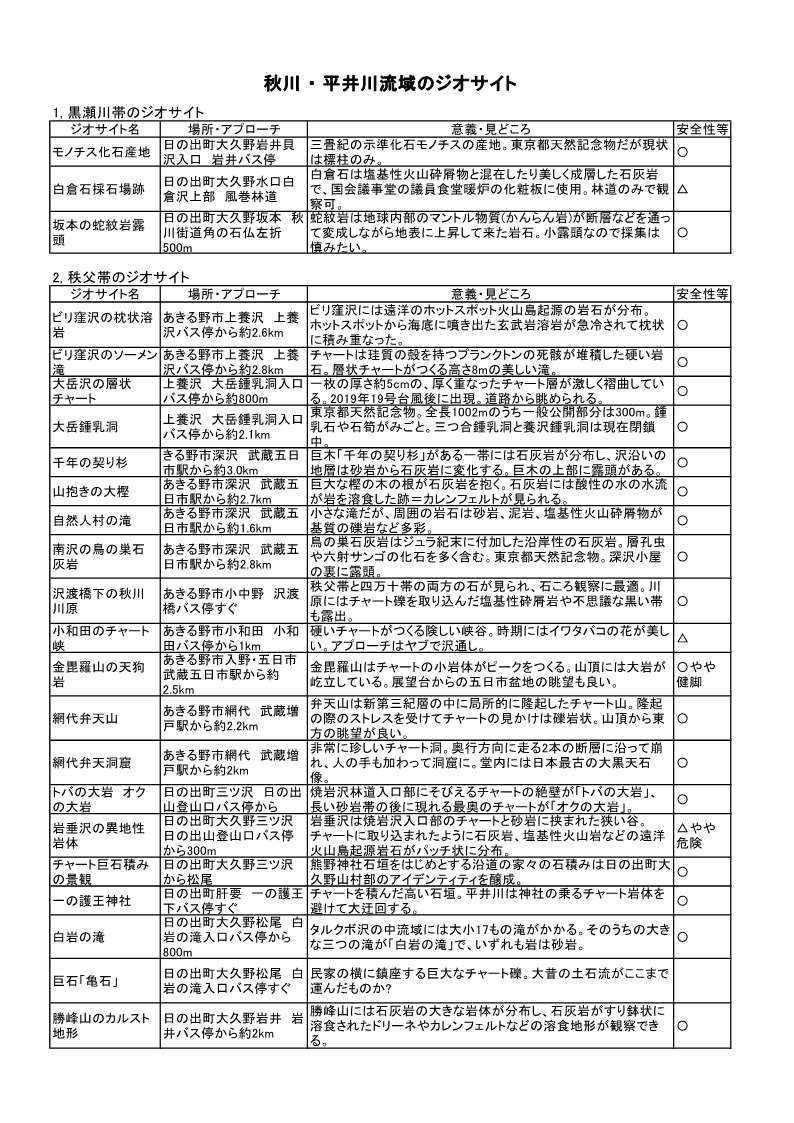 - テーマ:秋川流域ジオサイトの紹介と特徴ある地質・地形からあきる野の自然を学ぶ