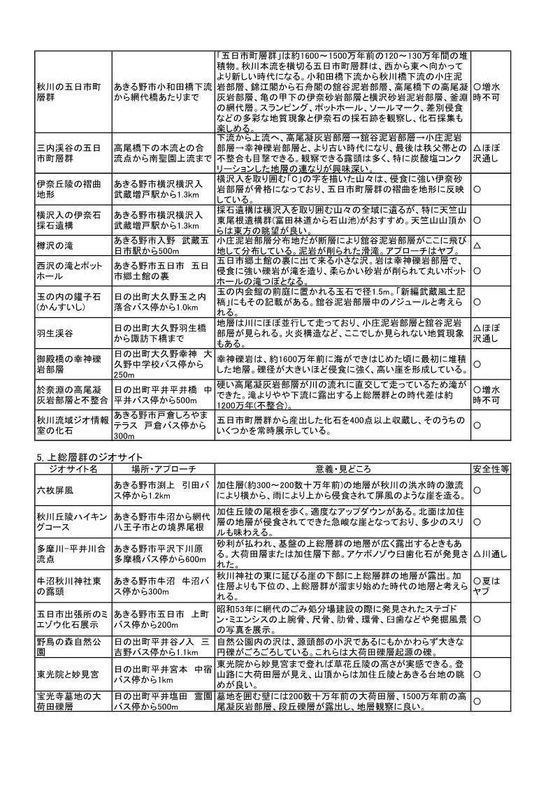 4 秋川・平井川流域のジオサイトの紹介