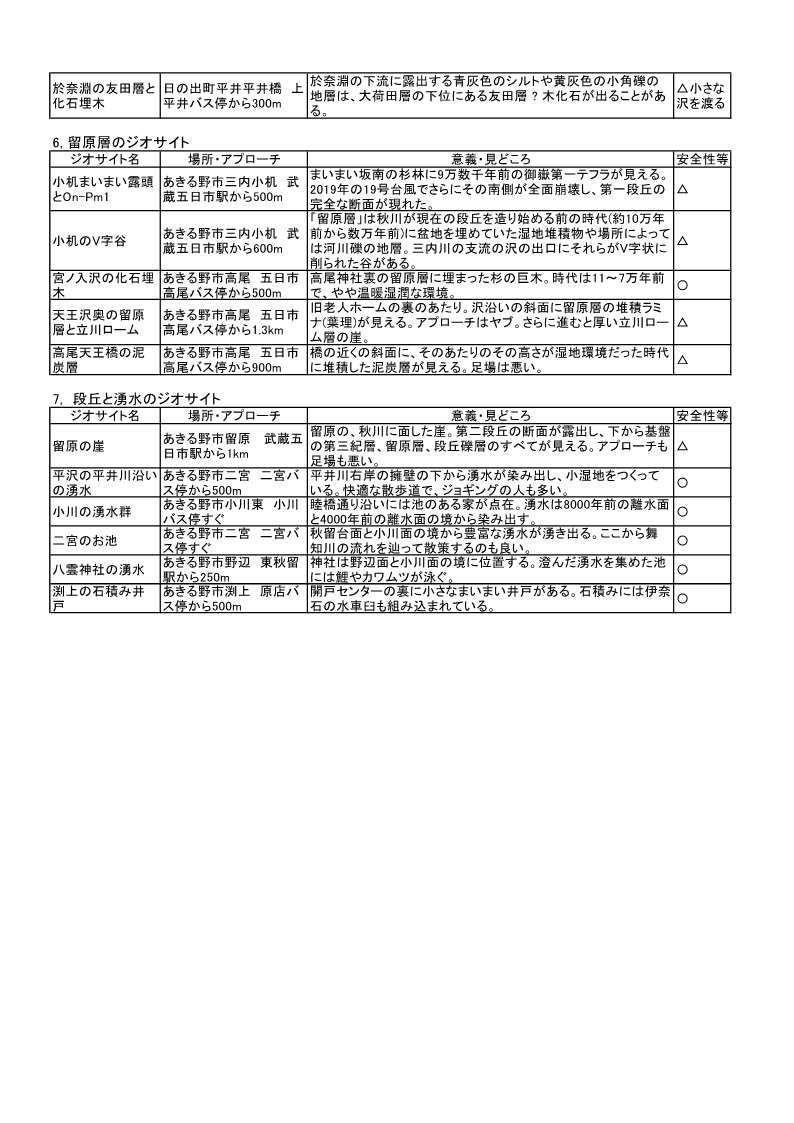 - 留原層のジオサイト 5カ所